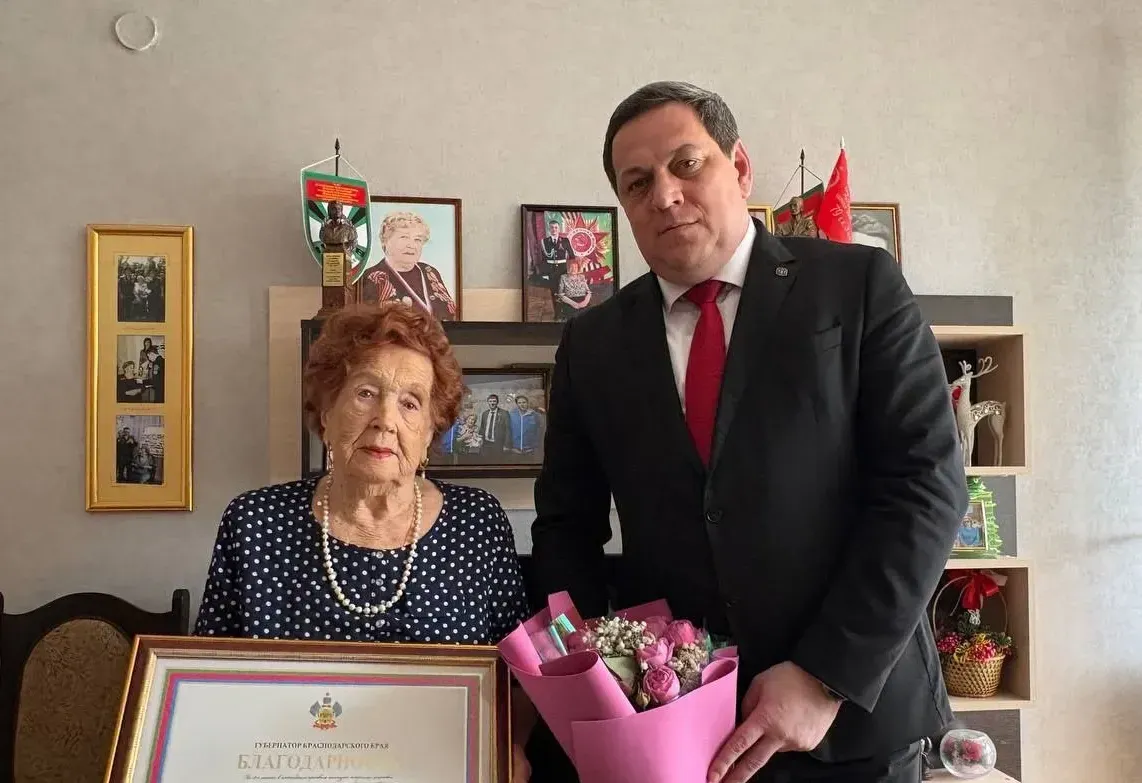 Юрий Ханин передал участнице Великой Отечественной войны Лидии Ивановне Резниченко Благодарность за подписью губернатора