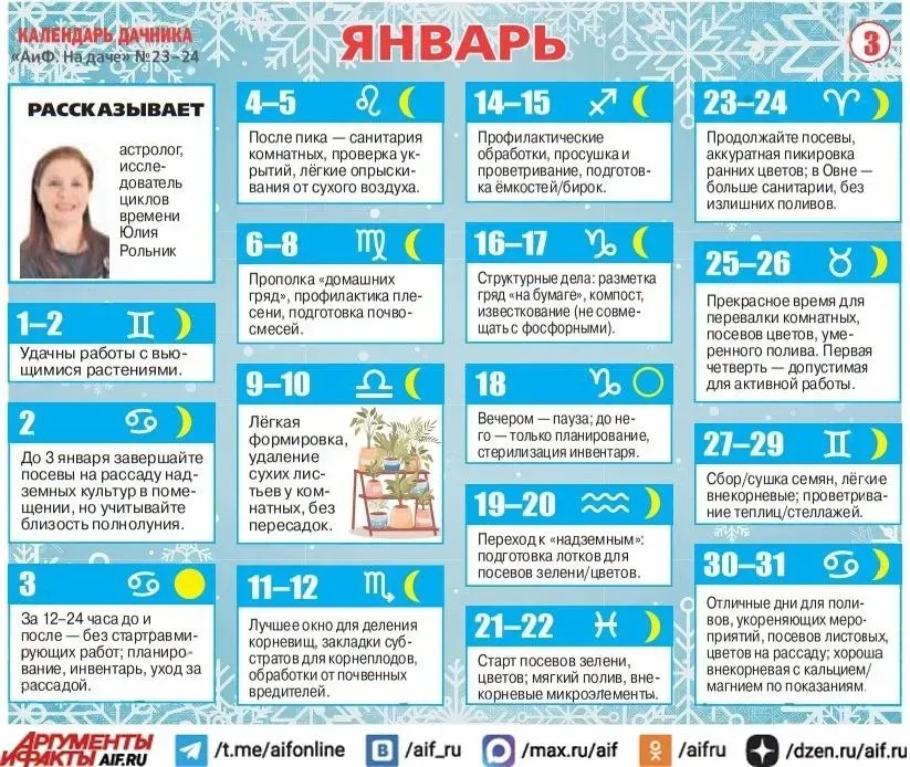 Благоприятные дни для посадки и посевов в январе