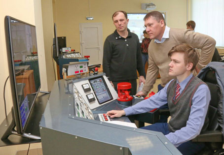 Фото: 1)Виталий Ванечкин – будущий машинист локомотива, участник финала V национального чемпионата молодых профессионалов «Worldskills Russia» (за пультом управления ). 2) Группа поддержки из лицея №3. У ребят в руках рекомендации по выбору рабочих профессий.