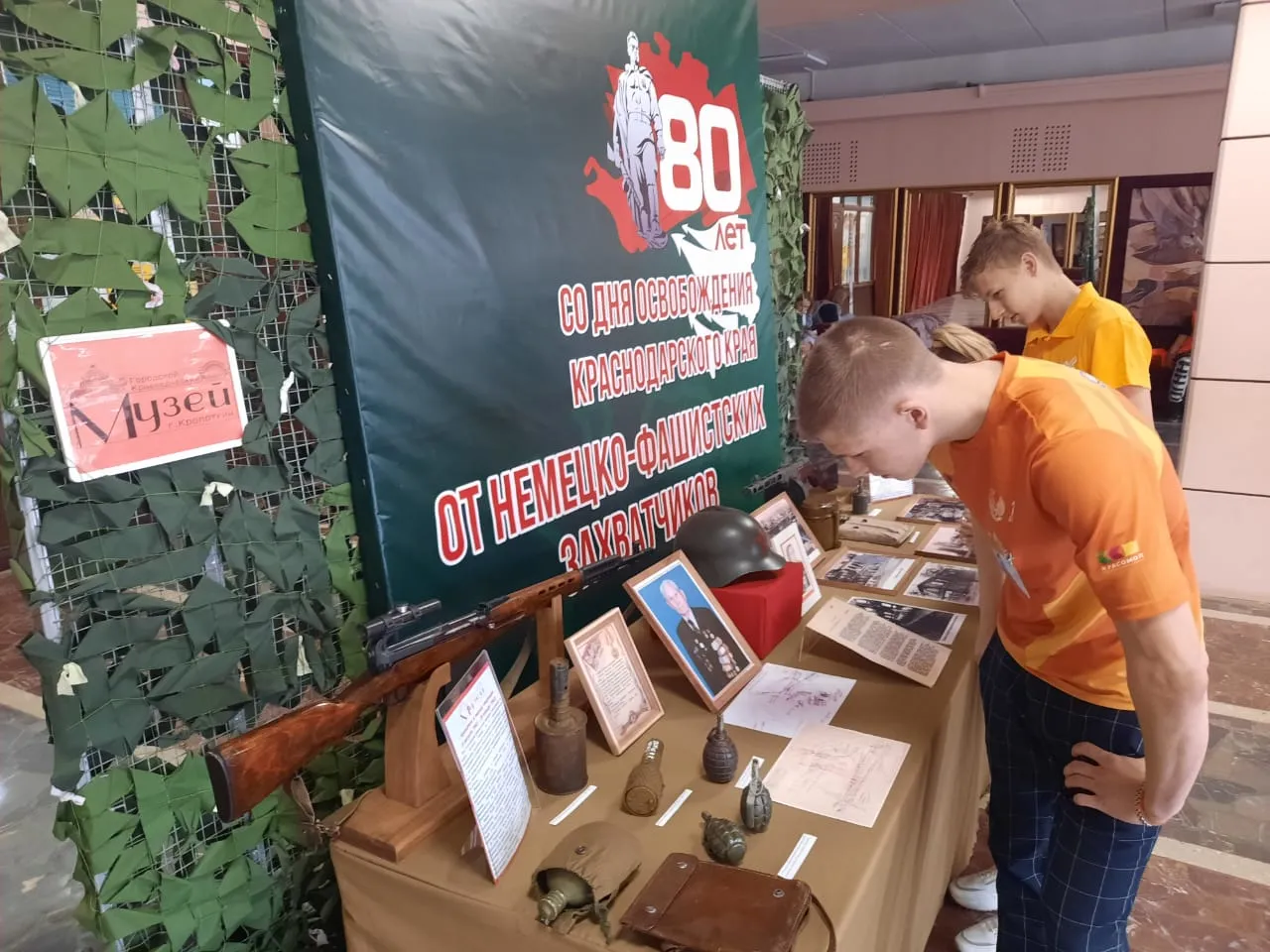 В год празднования 80-летия освобождения Краснодарского края от немецко-фашистских захватчиков и к молодежной просветительской общественно-значимой конференции «Родина и Отечество в моей жизни» сотрудники городского краеведческого музея подготовили выставку в фойе Дома культуры.