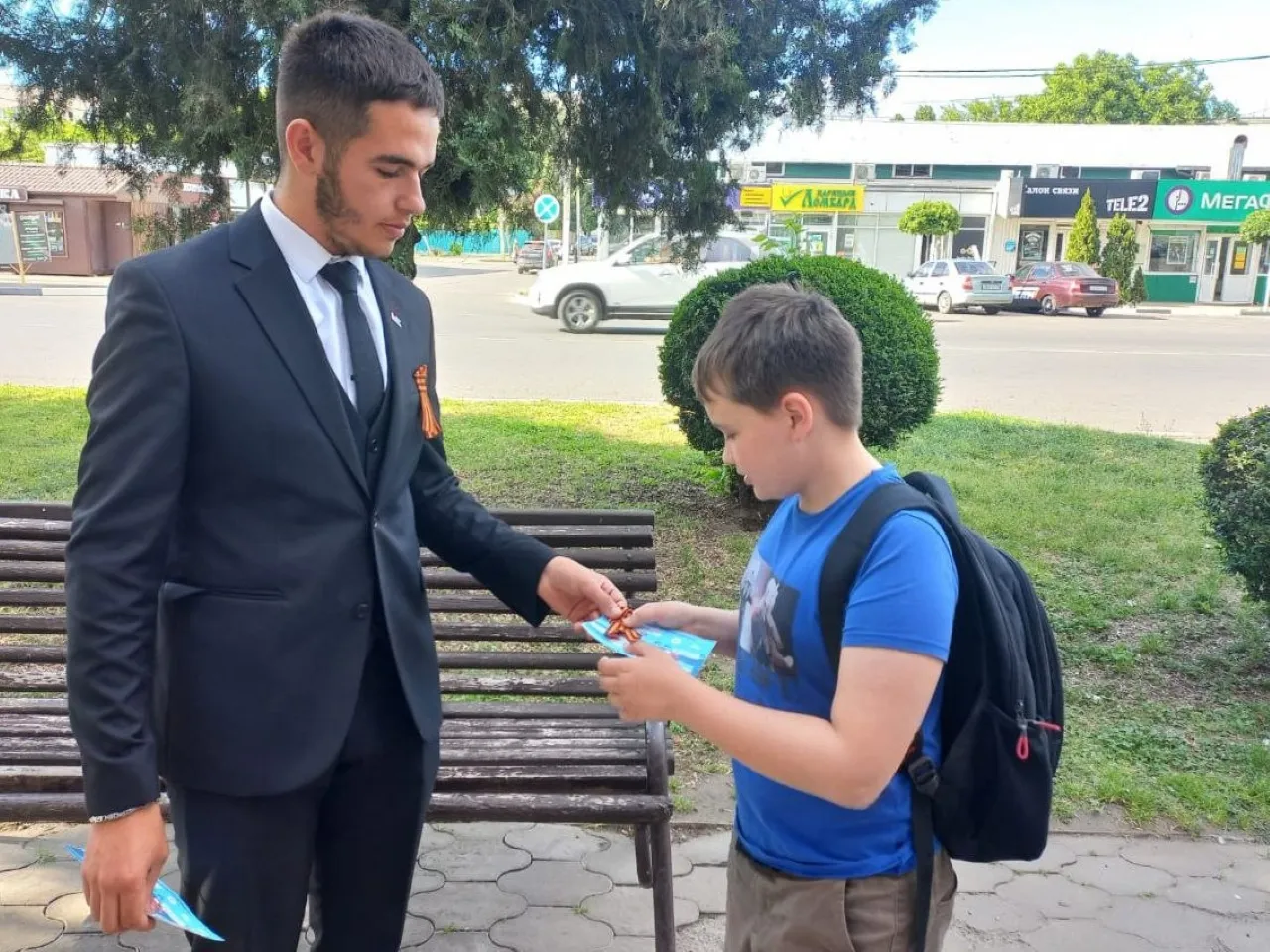 Участники акции объясняли жителям и гостям города, как правильно носить символ воинской доблести.