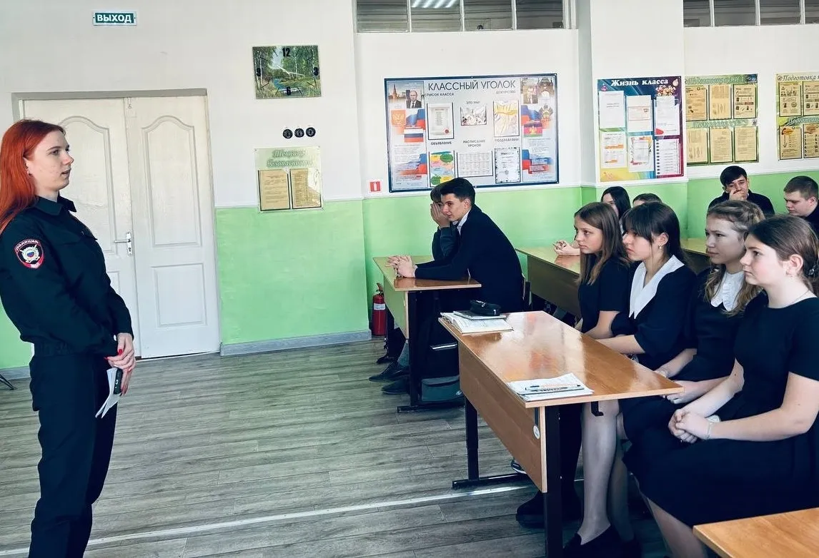 Инспектор по делам несовершеннолетних Отдела МВД России по Кавказскому району младший лейтенант полиции Анастасия Кочнева встретилась с учащимися 7-9 классов СОШ №9 хутора Привольный.