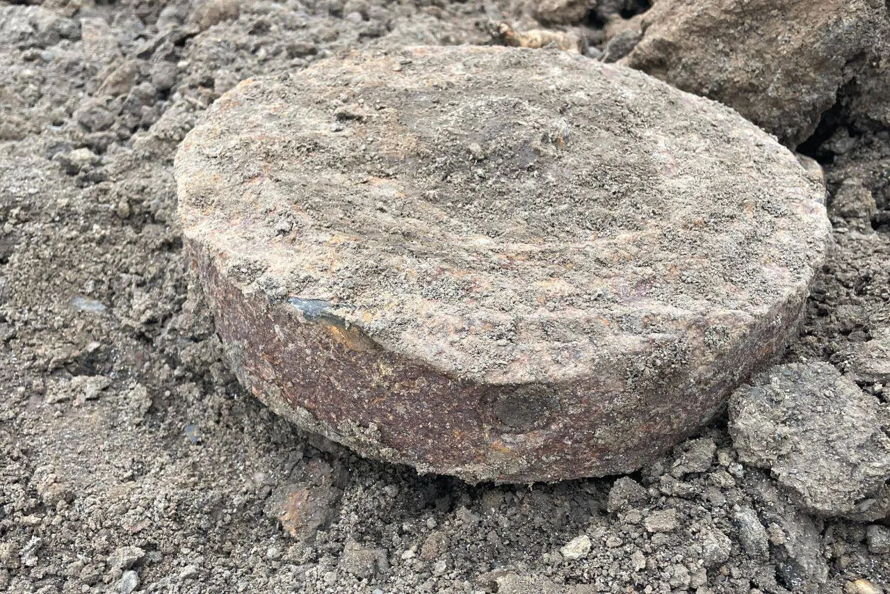 По ул. Розы Люксембург (рядом со школой 12) трактор, который ковшом рыл траншею, выкопал противотанковую мину.
