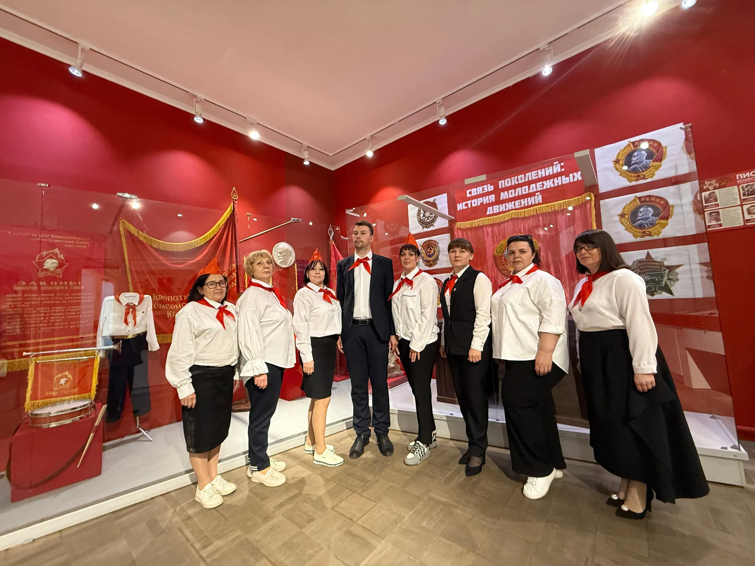 Молодежь познакомилась с атрибутикой молодежных движений советского периода - комсомольской, пионерской и октябрятской организаций.
