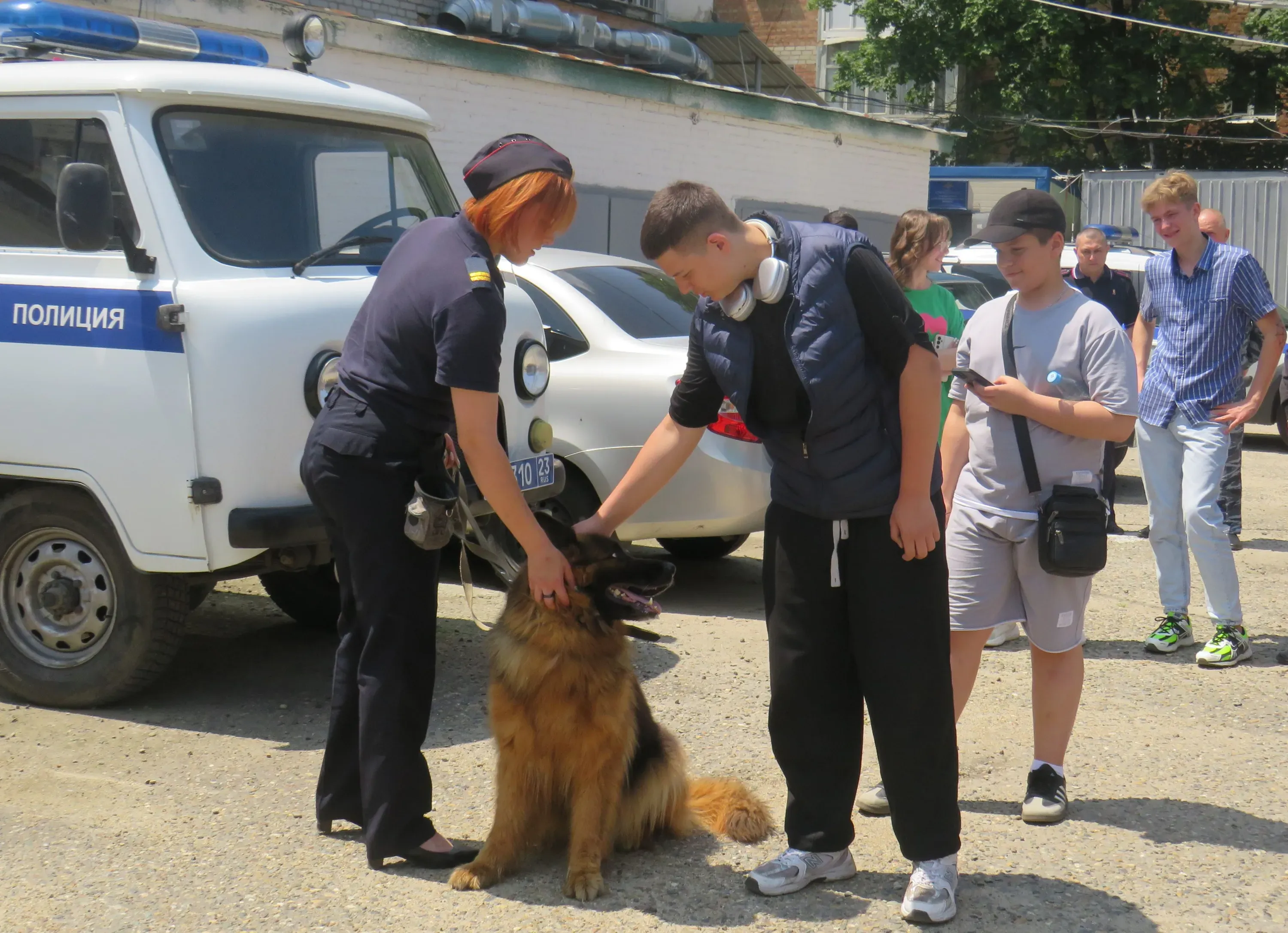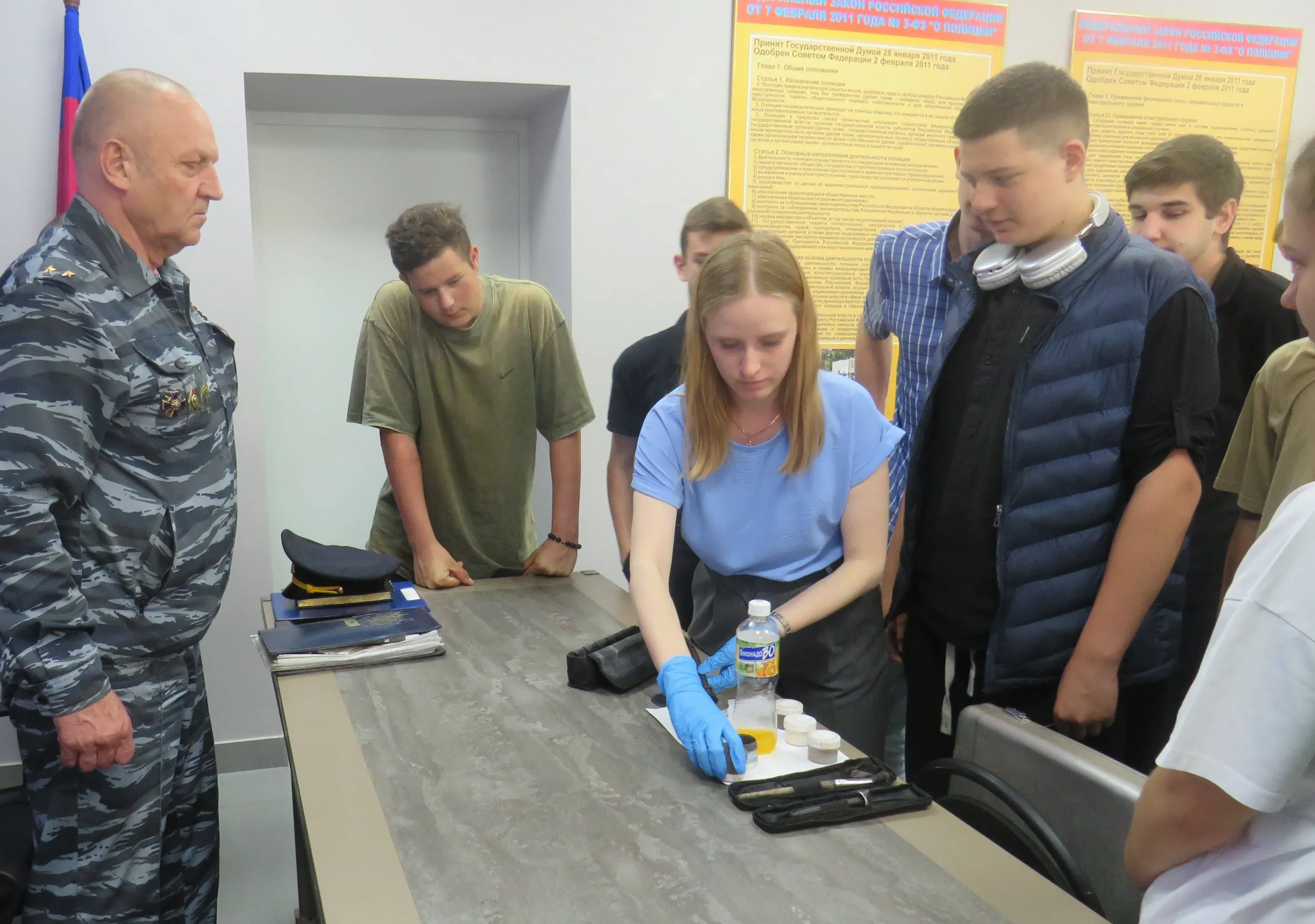 Экскурсия началась со знакомства с экспертно-криминалистической службой. Эксперт-криминалист старший лейтенант полиции Наталья Кульнева рассказала о видах экспертиз, особенностях проведения осмотра места происшествия, продемонстрировала содержимое «чемоданчика криминалиста». Спикер, используя магнитный порошок, провела с ребятами экспертизу по обнаружению следов пальцев рук. Младший инспектор-кинолог сержант полиции Валерия Чепрасова рассказала слушателям об особенностях дрессуры служебных собак, принципах воспитания мохнатых помощников, продемонстрировала учебную тренировку с немецкой овчаркой по кличке Гроза, обученной поиску взрывчатых веществ.