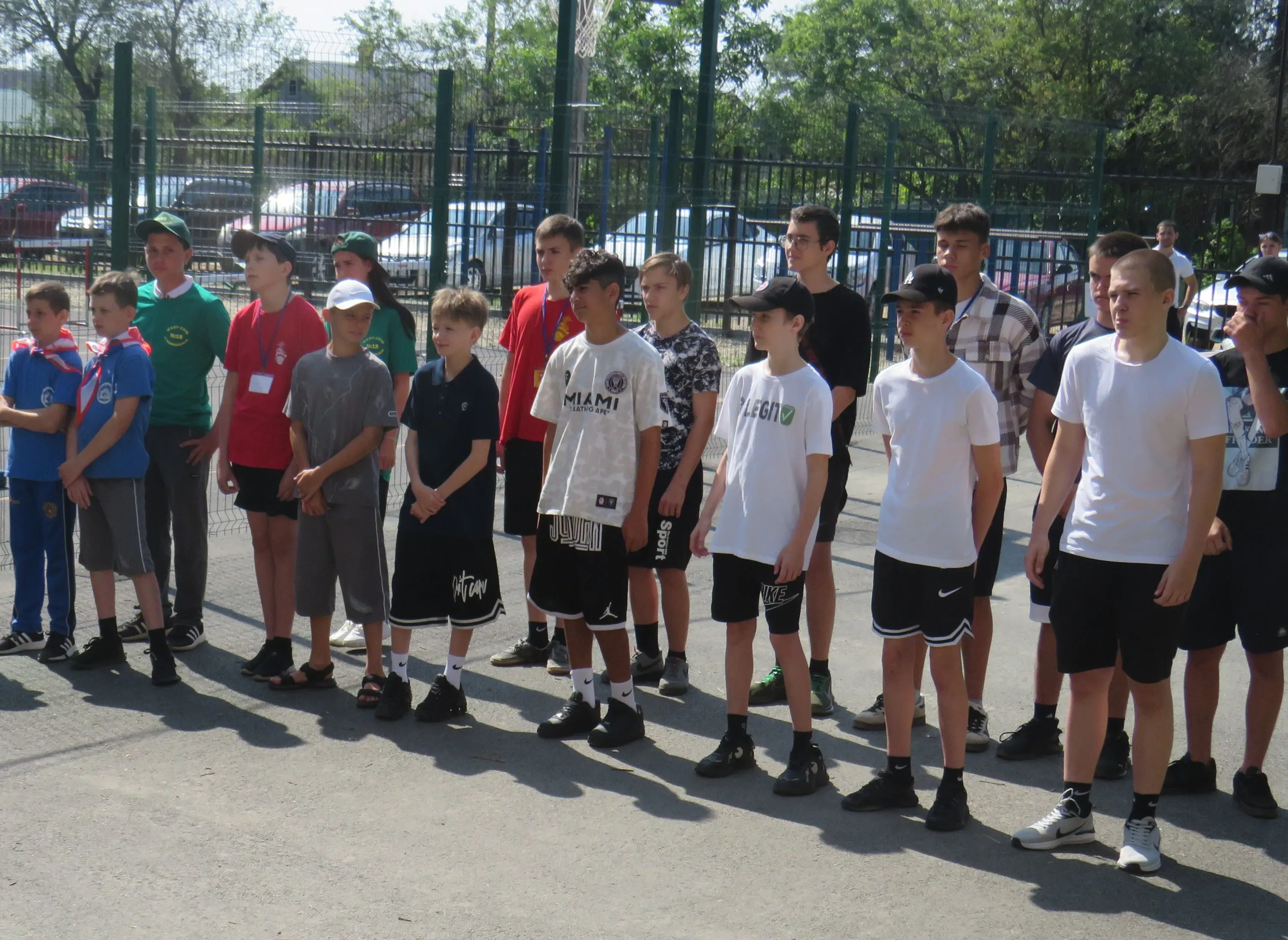 После церемонии поднятия Государственного флага России под звучание Гимна страны и пожеланий честной борьбы, мастер спорта по дзюдо, кандидат в мастера спорта по самбо, неоднократный победитель всероссийских южно-федеральных и краевых соревнований, полицейский отделения охраны и конвоирования подозреваемых и обвиняемых ИВС №1 младший сержант полиции Алина Шкарупа показала подросткам комплекс упражнений, которые помогают поддерживать хорошую физическую форму, и зарядила их перед спортивными эстафетами энергией, бодростью и отличным настроением.