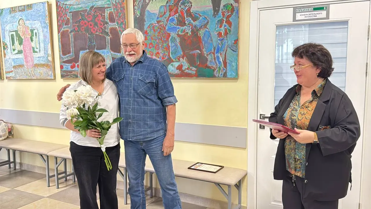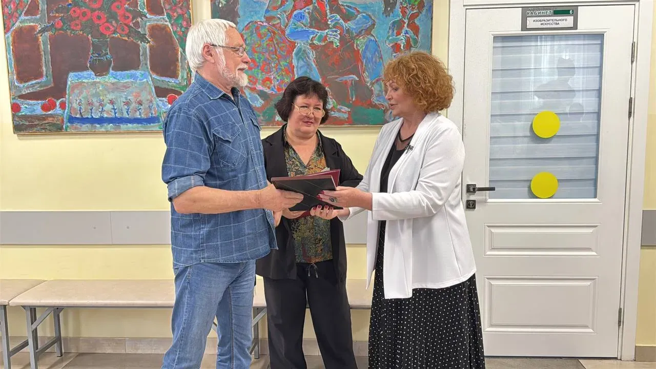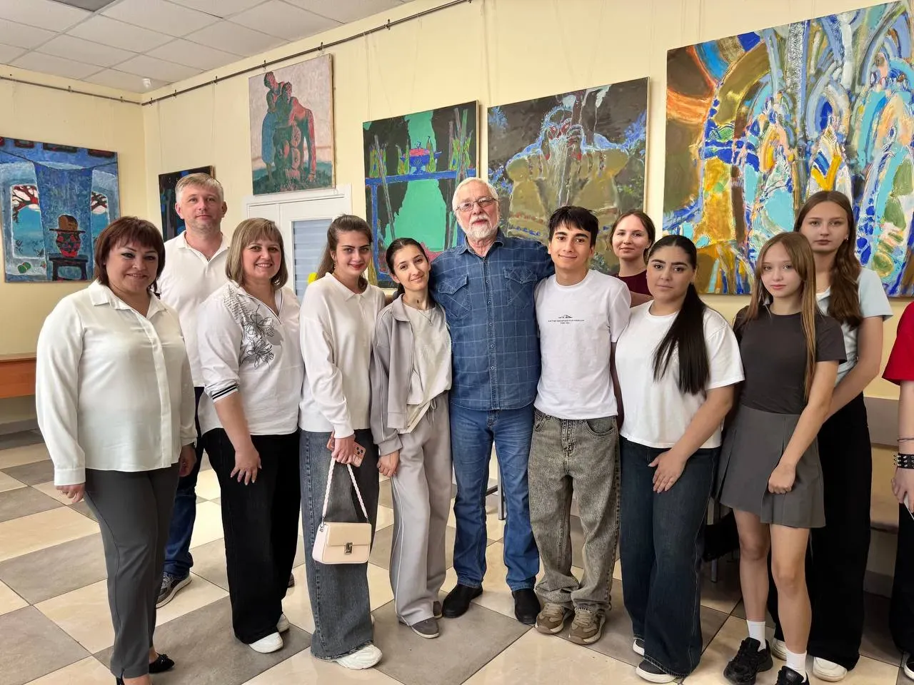 Ученики, преподаватели и почетные гости собрались послушать историю творчества мастера, увидеть мир глазами настоящего художника. Официальная часть перешла во встречу в тесном кругу. Маленькие художники буквально засыпали вопросами своего знаменитого земляка, а тот щедро делился секретами вдохновения и советовал развивать талант дальше.