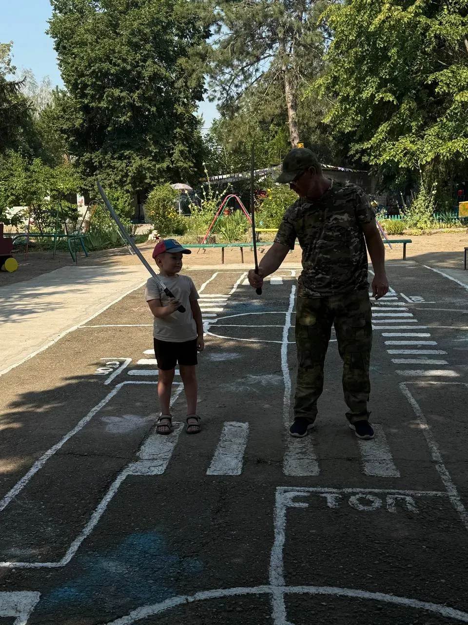 На прощание атаман Сергей Коваль детскому саду сделал подарок — тренировочные шашки, чтобы ребятам было проще учиться казачьим танцам и понимать культуру и традиции предков.