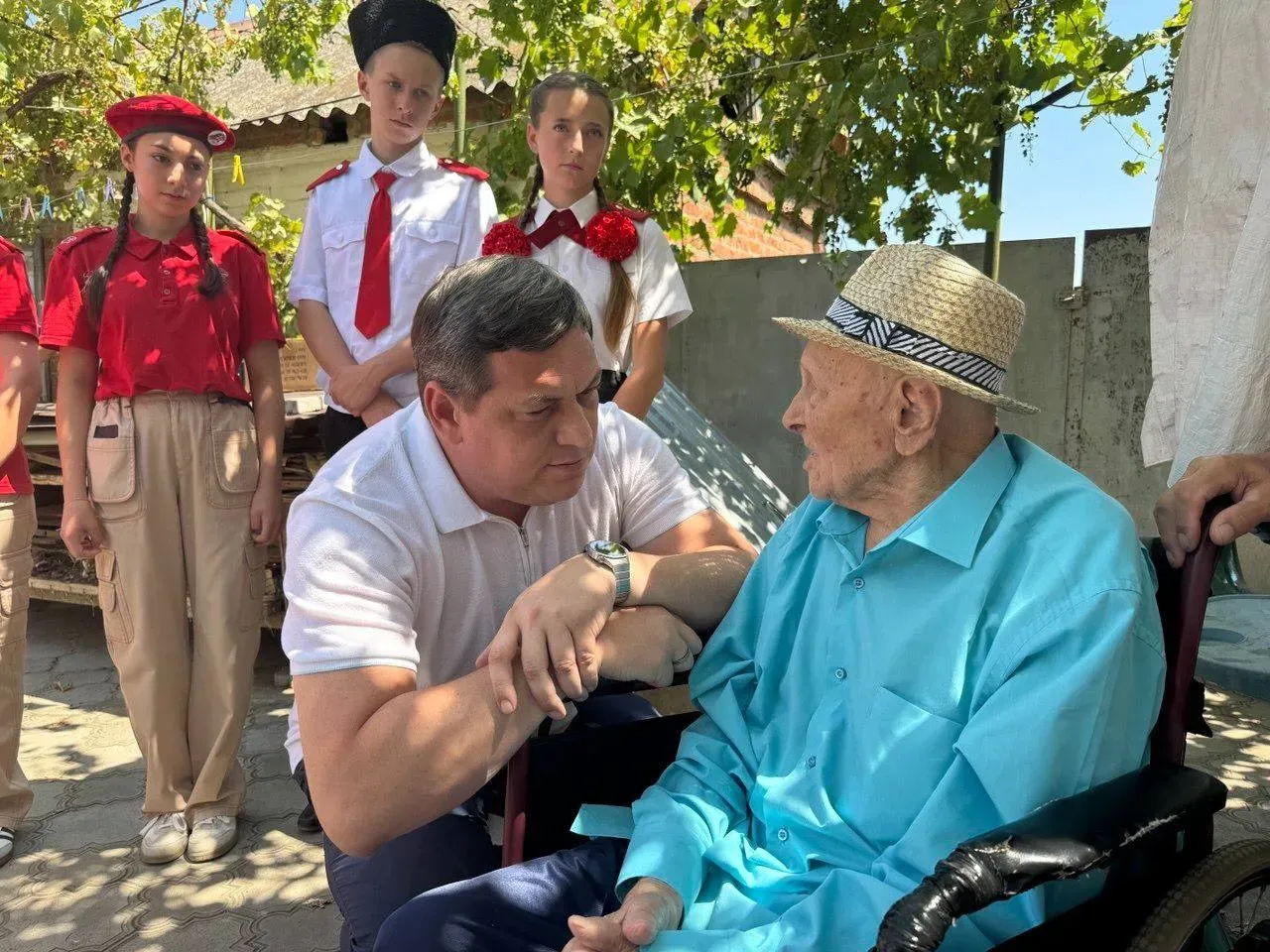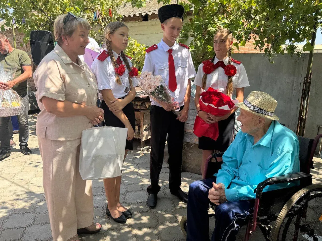 — Весь ваш жизненный путь служит примером подрастающему поколению, учит его стойкости и любви к Родине. Как говорится, дерево приносит плоды, пода живы его корни. Многих лет вам, Иван Николаевич, здоровья и благополучия, — сказал Юрий Александрович и передал юбиляру от имени всех жителей Кавказского района цветы и подарки. А также, заметив старую инвалидную коляску Ивана Николаевича, пообещал помочь приобрести новую.
