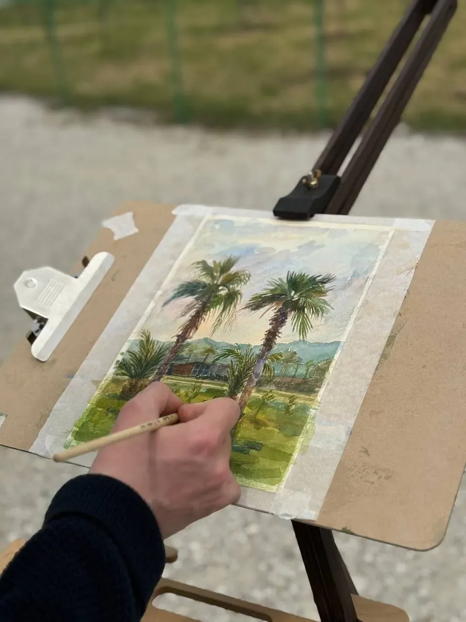 Отдельная гордость курса — выездные занятия-пленэры, где художники пишут прямо на природе, наслаждаясь видами волшебного города Сочи и его окрестностей. Денис создал десятки великолепных полотен, навсегда сохранивших красоту черноморских просторов.