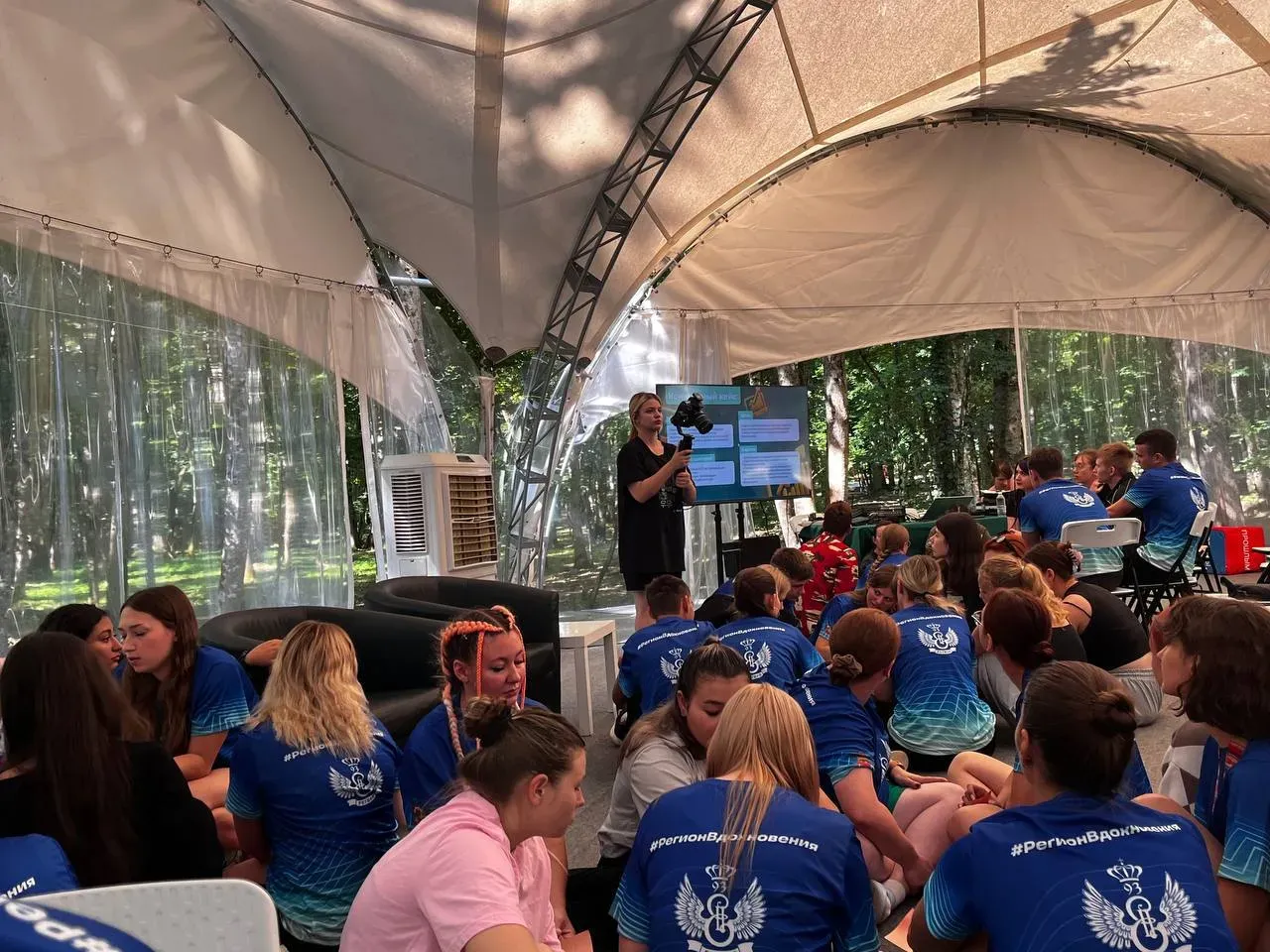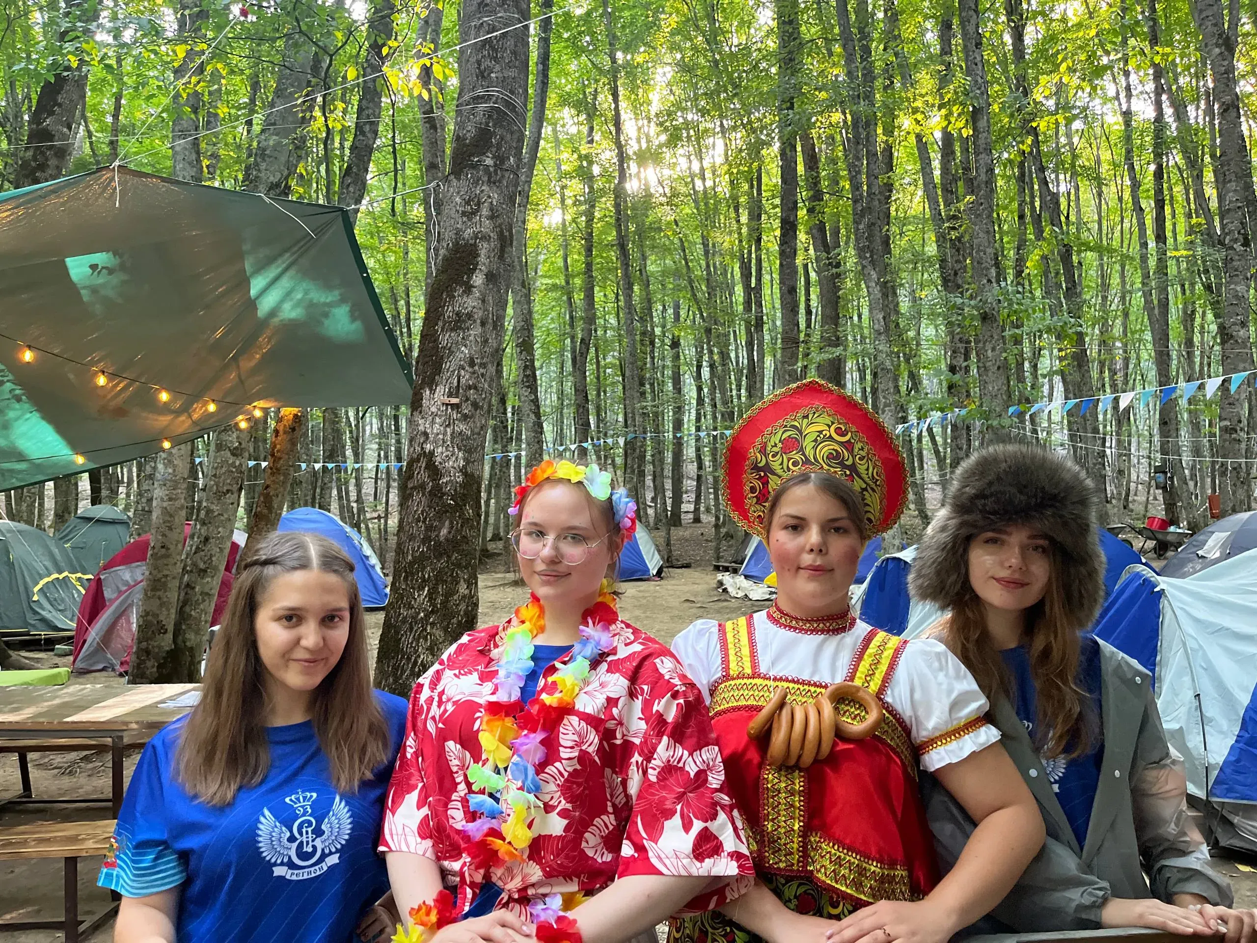 Утро второго дня началось со звучания из всех колонок лагеря песни «Доброе утро», далее утренние процедуры, зарядка и вкусный завтрак. На трек «Медиа» приехали спикеры из газеты «Краснодарские известия» и рассказали нам про хорроры (фильмы-ужастики) и литературную критику. Обед, а после фотоконкурс, в котором я, кстати, попала в пятерку лучших! Среди нескольких тем — «Сплоченность Родины», именно ее я и использовала. Мы с подружкрй вплели в косы бело-сине-красные ленты и пофоткались. Это было забавно и патриотично.