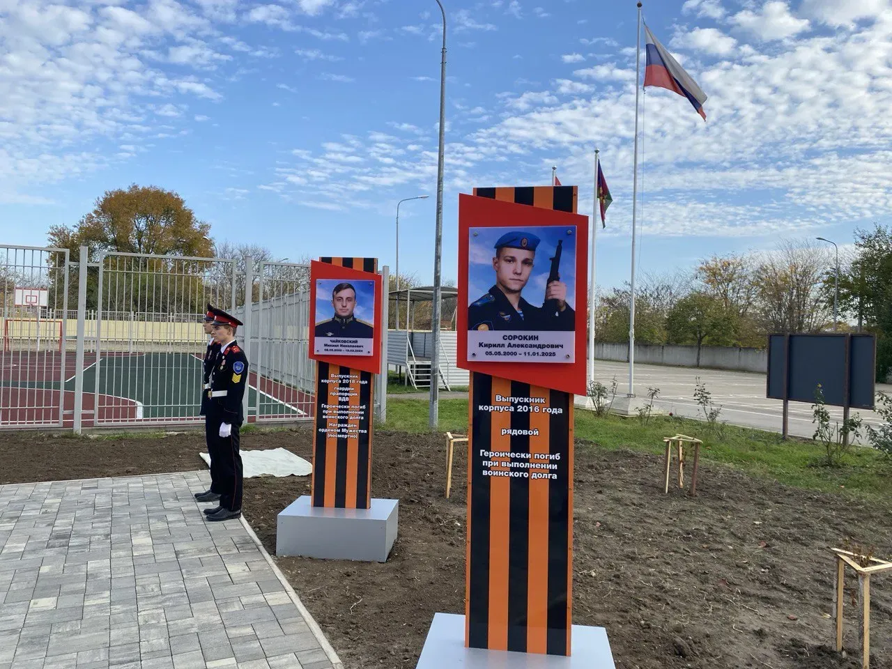 — Очень важно, что этот День воинской славы России мы отмечаем в Городе воинской доблести, коим стал Кропоткин в апреле этого года. Мы не забываем подвиги поколения военного лихолетья — подвиг курсантов-урюпинцев, юношей, которые были немногим старше вас, но они остояли рубежи Кубани. А это была основополагающая битва за Кавказ. Я не хочу, чтобы вы и мы испытали то, что перенесли те ребята из 42-го года. Но тот из вас, кто выбрал путь военнослужащего несомненно элита нашего общества. Гости корпуса поклонились героям, увековеченным на Аллее Славы, — выпускникам, погибшим на фронтах СВО. Директор корпуса Виктор Рыба рассказал, что Аллея создавалась, что называется всем миром, средства на обилиск предоставил Алексей Петрович Езубов, стройматериалами помогли подрядчики. А воспитатели с учащимися 11 классов сами уложили плитку, бордюры. Мужчины работали летом, невзирая на свои отпуска.