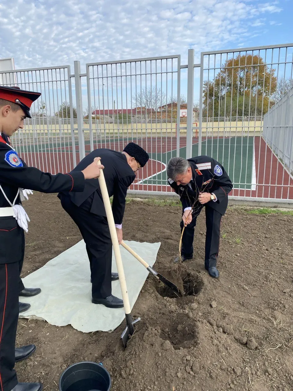 Алексей Езубов и Юрий Ханин с кадетами высадили молодые деревца по периметру аллеи. Горькая, но добрая память о геройски погибших земляках, воплотившаяся в этом памятном месте, станет долгие годы воспитывать поколения юных казаков.