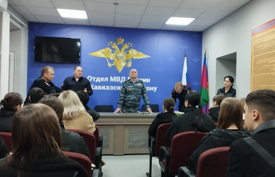 Сотрудники Отдела МВД России по Кавказскому району организовали и провели профориентационное мероприятие для студентов второго и третьего курсов юридического техникума г. Кропоткина.