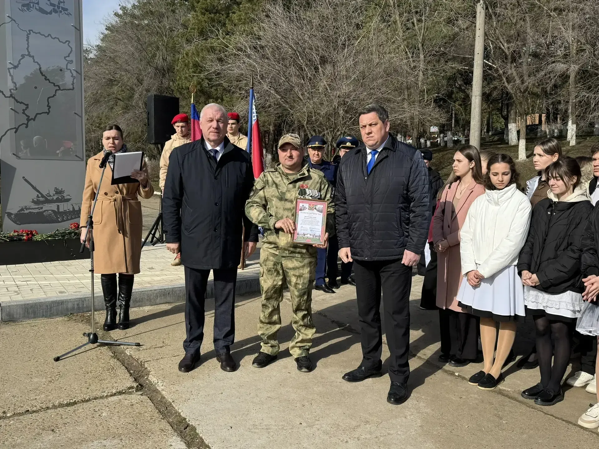 К годовщине начала специальной военной операции памятник Героям СВО в мемориальном комплексе 30-летия Победы был обновлен. О величии подвига российских бойцов, противостоящих нацизму на Украине, и сохранении памяти говорили на митинге председатель Совета Кавказского района Игорь Кошелев и глава Кропоткина Владимир Елисеев.