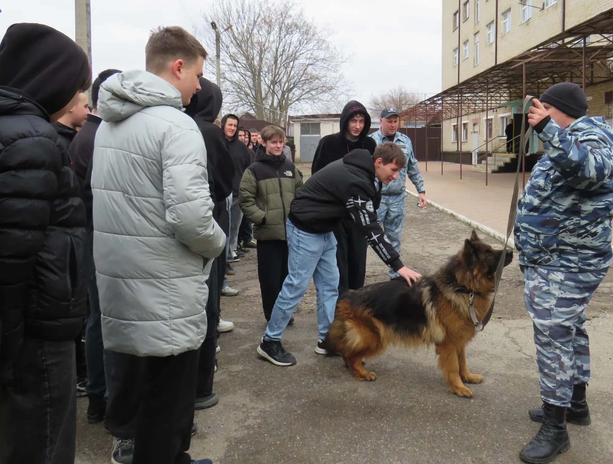 Мероприятие началось со знакомства с кинологической службой. Начальник ЦКС старший лейтенант полиции Станислав Дедюлин рассказал студентам о породах, воспитании и особенностях дрессуры служебных собак. Инспектор-кинолог старший сержант полиции Владислав Калесник познакомил ребят с розыскной собакой породы немецкая овчарка по кличке Гроза, обученной на поиск и обнаружению взрывных устройств и взрывчатых веществ и провел учебную тренировку.