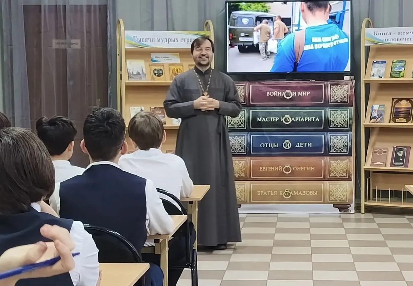 Представитель Общественного совета настоятель Храма св. апостолов Петра и Павла Николай Черных поднял в беседе с лицеистами важную тему - о том, что такое доброта и как добрые дела объединяют людей, какой силой обладает слово, как наши поступки влияют на нас самих и окружение. Школьники внимательно слушали батюшку и задавали интересные вопросы.