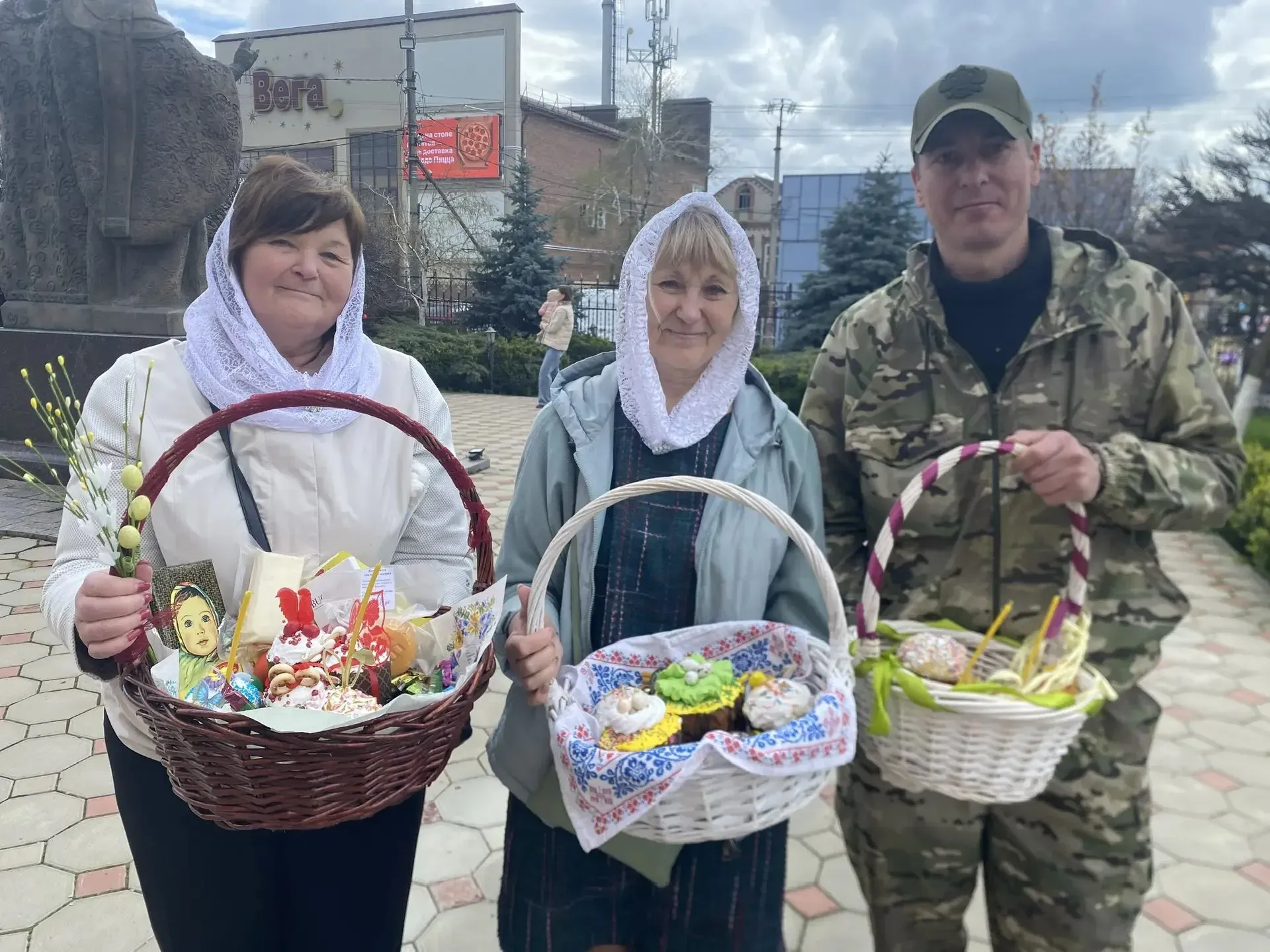 Задолго до наступления полуночи, когда город еще погружен в тишину, Покровский собор начинает наполняться людьми. Уже во дворе храма особенная атмосфера, перемычки между зданиями сверкают гирляндами, украшены пасхальной атрибутикой; на высоком крыльце первого входа в собор переливается огнями большая Паска (так принято на Кубани называть кулич) — праздничный арт-объект. Возле него люди фотографируются семьями.