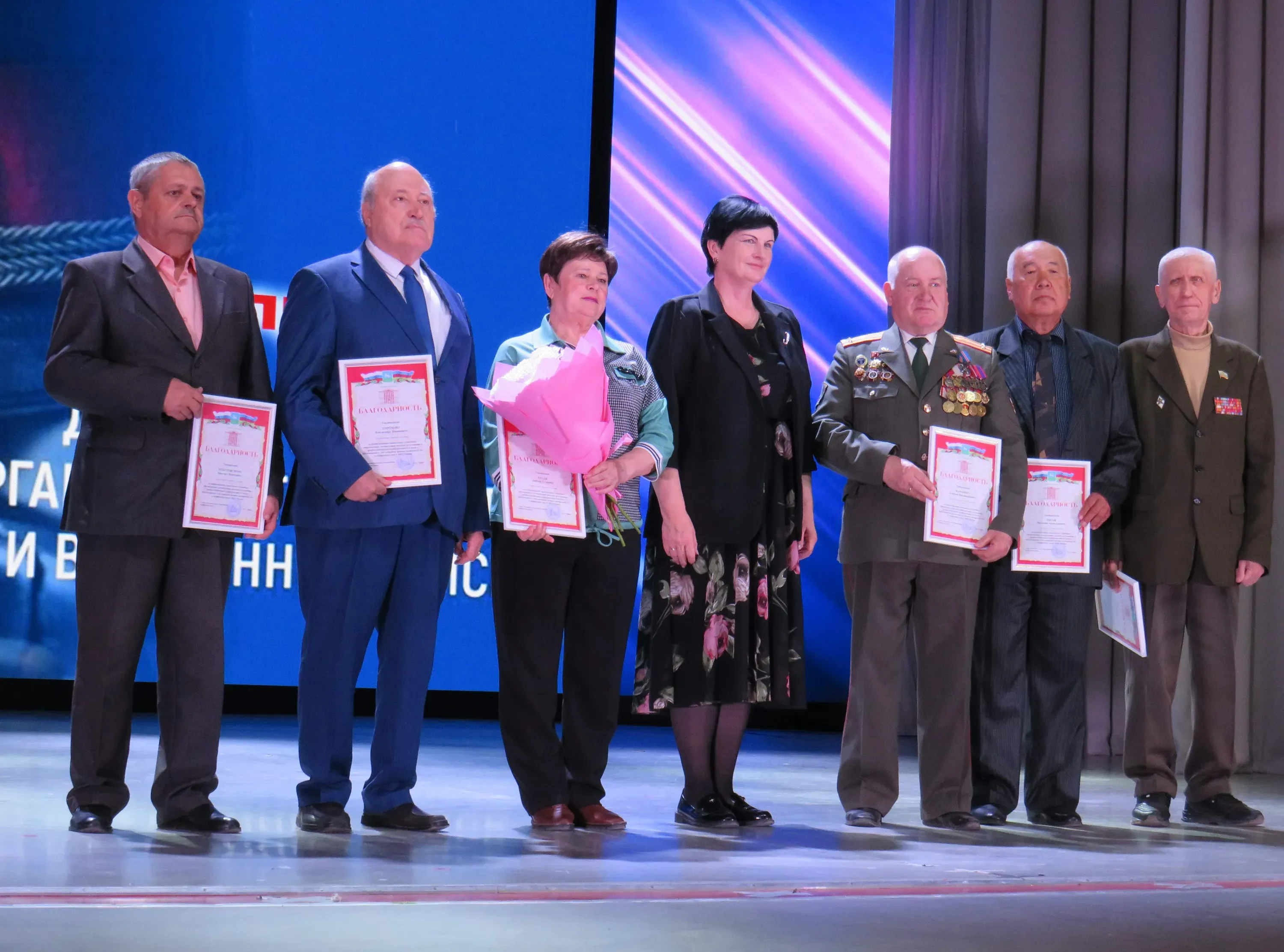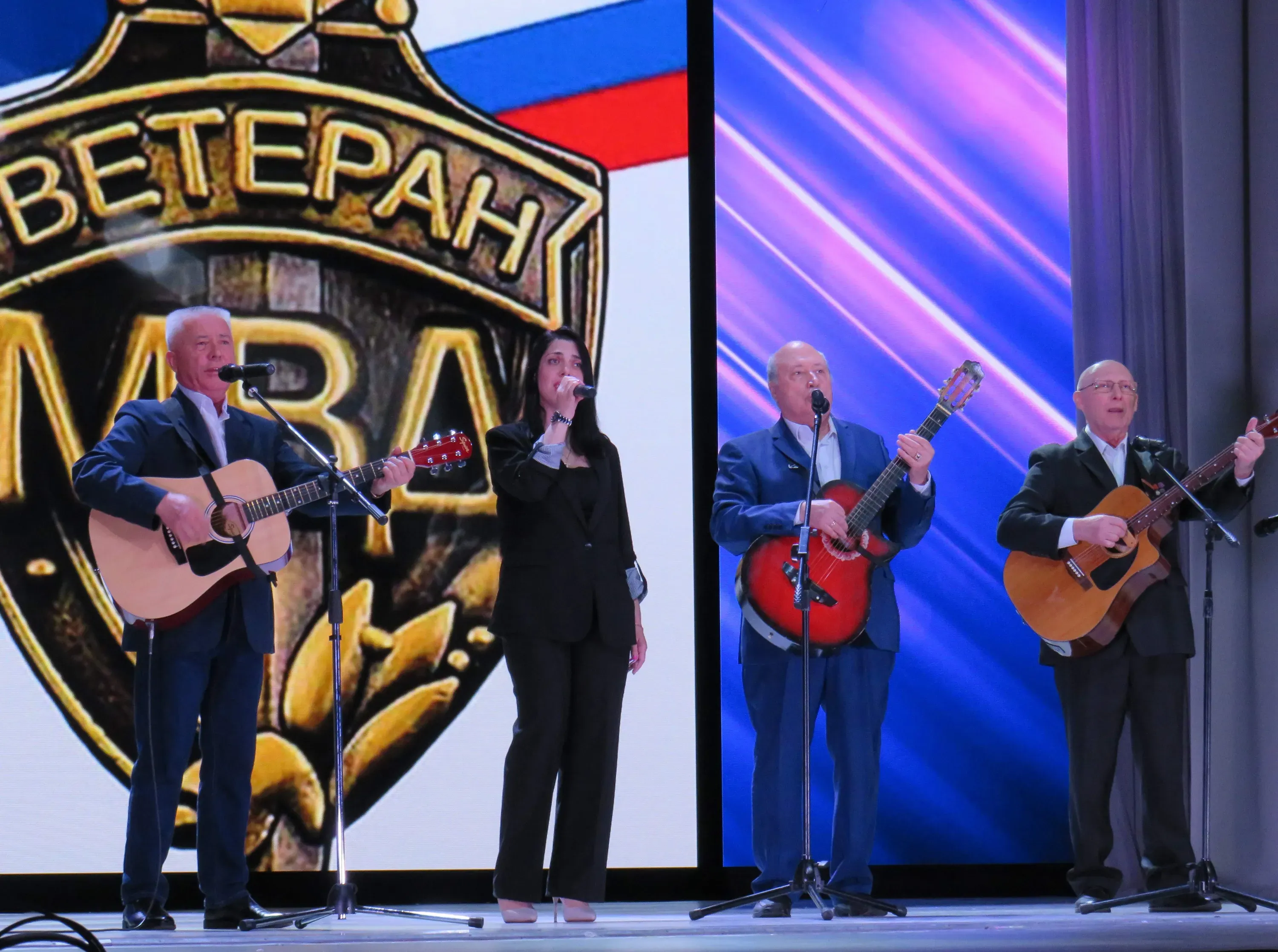 На протяжении всего мероприятия в зале царила теплая праздничная атмосфера. Сольные музыкальные номера подарили уважаемым ветеранам вокалисты Дома культуры. Проникновенные строки песни «Офицеры» зал слушал стоя. Патриотические песни исполнил вокально-инструментальный ансамбль «Рубеж», созданный творческими силами ветеранов органов внутренних дел, а свои авторские песни исполнил под гитару бывший коллега в сопровождении женской вокальной группы. Завершился праздничный концерт задорными казачьими песнями в исполнении хора «Раздолье».