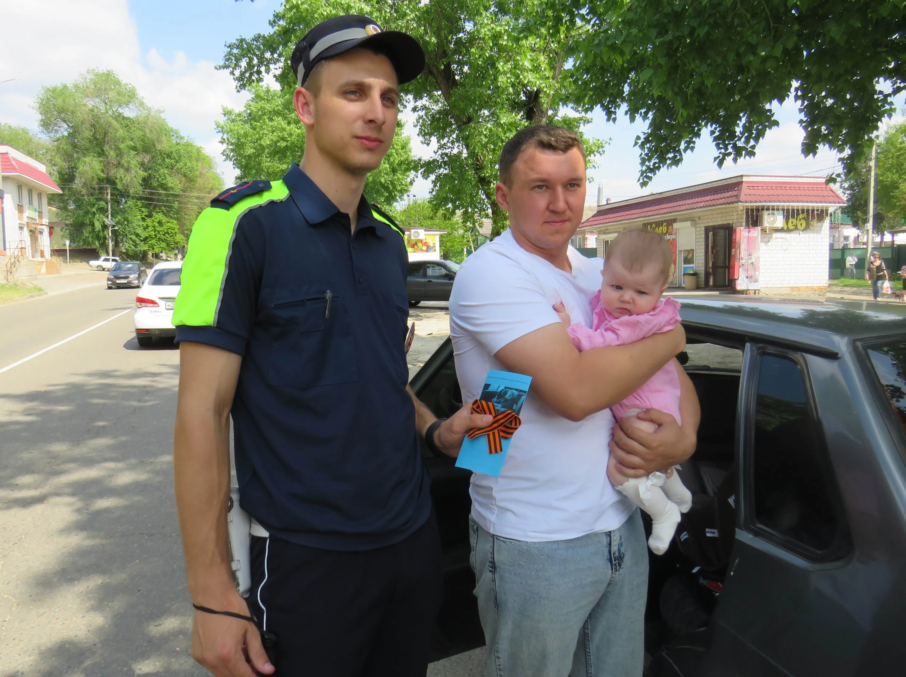 В Кавказском районе сотрудники дорожно-патрульной службы поддержали всероссийскую акцию «Георгиевская ленточка»